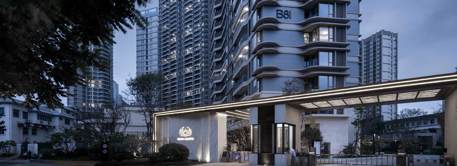 項(xiàng)目規(guī)劃分為南北兩個(gè)區(qū)域,南面是兩棟樓王組團(tuán),尊享一線觀西湖景觀;北面是三棟拼接樓棟,呈扇狀布局,圍合內(nèi)部主景觀,且最大化利用景觀展示面觀景。塔樓建筑造型為曲直交織特點(diǎn),簡(jiǎn)潔明快,同時(shí)具有很強(qiáng)的標(biāo)志性,主樓部位為全土建構(gòu)造,在精細(xì)立控設(shè)計(jì)的基礎(chǔ)上,既節(jié)約了成本,又展現(xiàn)出精致的外立面效果。