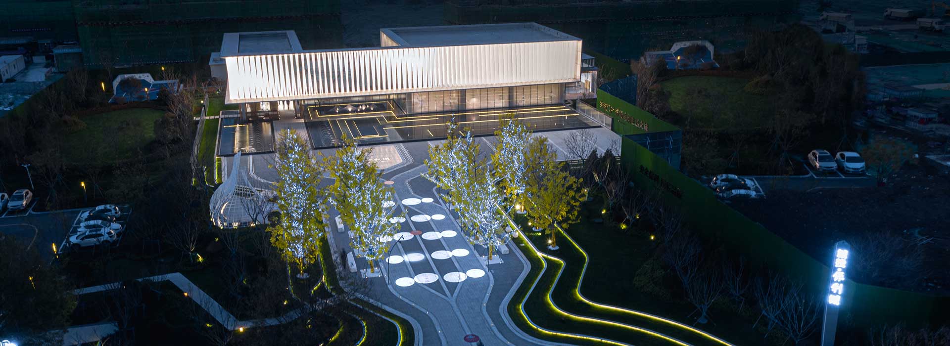 設計突破現(xiàn)狀周邊建筑固有形象,營造差異化個性場景,通過制造大體量懸浮、虛實對比、發(fā)光的月光寶盒形象,強化展示中心前衛(wèi)、時尚、輕盈的城市昭示面。