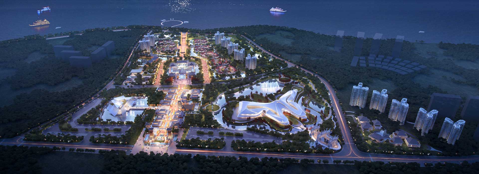 項(xiàng)目用華人秉承千年的經(jīng)典哲學(xué)和智慧作為設(shè)計(jì)的基脈;用中國經(jīng)典的文化和傳承作為設(shè)計(jì)的語言;用豐富的華人非遺驕傲和文化內(nèi)涵,策劃精彩的活動(dòng)內(nèi)容,打造一個(gè)永不落幕的盛典;以古今結(jié)合的建筑和會(huì)展演藝,打造一個(gè)繼往開來的盛典,滲透“一帶一路、絲綢之路”的精神,打造一個(gè)同歡共慶的盛典。