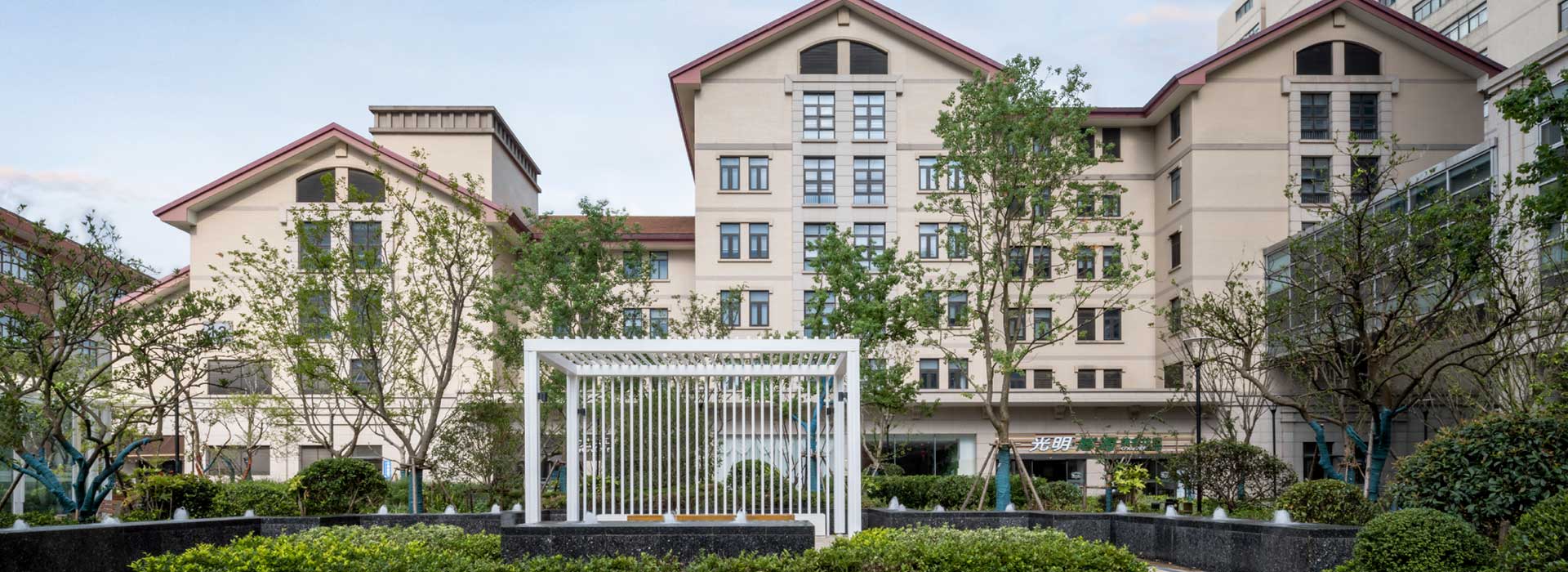 沿思南路的多層跌落式保障樓采取與思南路花園保護(hù)區(qū),以及醫(yī)院東北角科研實(shí)驗(yàn)樓相協(xié)調(diào)的造型格調(diào),色彩、建筑形態(tài)均完全融入特定的環(huán)境中,充分體現(xiàn)歷史風(fēng)貌保護(hù)的設(shè)計(jì)構(gòu)思。