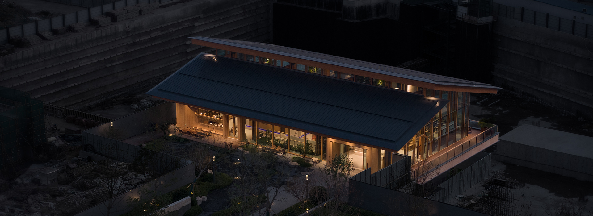 青島保利和著展示區(qū),是首個(gè) TOD 理想棲居地。靈感源于青島“向海而生,與山為鄰”的城市畫(huà)面,融合立體公園、運(yùn)動(dòng)與市集商業(yè)。雙坡懸山屋頂傳承中國(guó)傳統(tǒng)木構(gòu)坡屋頂形式,同時(shí)利用地塊內(nèi)高差打造多樣空間,提供多元?dú)w家流線;三角形木構(gòu)結(jié)合爪形承重結(jié)構(gòu)優(yōu)化了傳統(tǒng)屋面形式;為青島的文化續(xù)演注入新的活力,也將推動(dòng)公園式商業(yè)模式的發(fā)展,為未來(lái)的城市建設(shè)提供一種可持續(xù)發(fā)展的可能性。